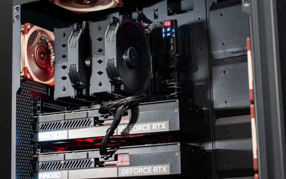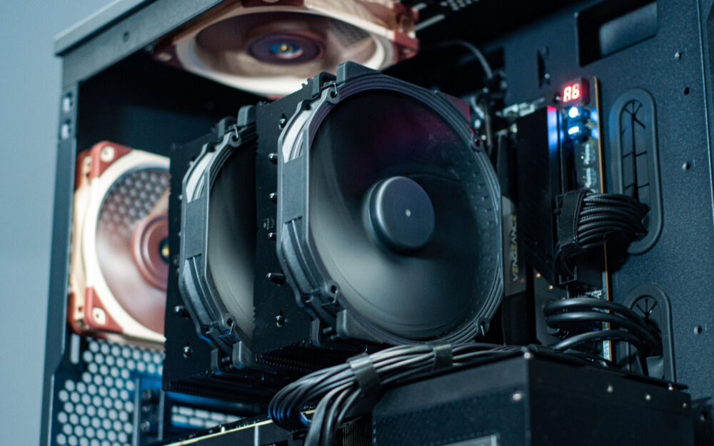 Stability is maintained by an “air-cooling first” philosophy. We utilised the legendary Noctua NH-D15 Chromax Black for the CPU, supported by a full suite of Ultra Quiet Ultra Durable Noctua A Series Fans. This setup provides a silent yet powerful airflow path that keeps the internal temperatures optimal without the complexity of liquid loops. Whether it’s 3D rendering, AI model training, or high-fidelity simulation, this build is the definitive answer for professionals who refuse to compromise.